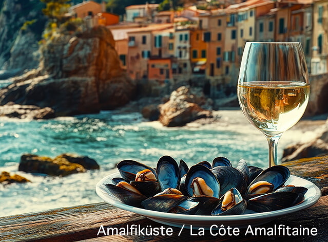 La côte Amalfitaine séduit dès le début avec Vietri sul Mare, perchée au-dessus du golfe de Salerne et célèbre pour son art de la céramique. Ensuite, le joyau côtier Maiori (UNESCO) vous accueille avec ses ruelles chatoyantes et sa plage de sable. Le couronnement est la somptueuse Villa Rufolo à Ravello, qui enchante par ses jardins de rêve et sa vue imprenable sur la côte.