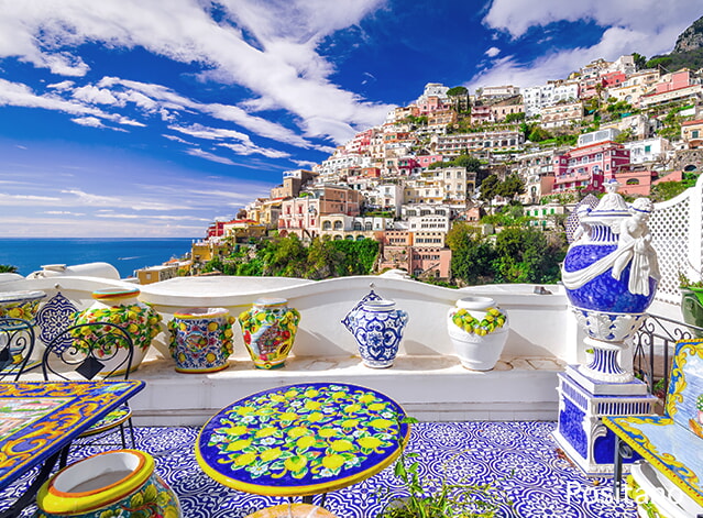 La côte amalfitaine est célèbre pour son artisanat : les céramiques peintes à la main de Vietri sul Mare, les bijoux raffinés en camée et en corail de Torre del Greco, les délicates marqueteries de Sorrente, le papier fait main d’Amalfi, ainsi que les sandales en cuir sur mesure de Positano. S’y ajoutent des produits réalisés en pierre de lave du Vésuve et divers articles à base de citron, comme le limoncello, les parfums et les savons. Profitez de vos visites pour chercher des souvenirs et des cadeaux uniques à rapporter chez vous en souvenir de votre voyage !