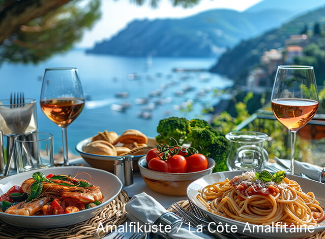 La cuisine de la côte amalfitaine se distingue par trois couleurs principales, qui sont aussi celles du drapeau national : le vert, le blanc et le rouge.