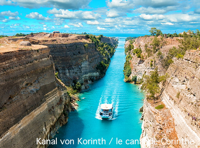 Vol vers Athènes et trajet vers l‘impressionnant canal de Corinthe – un chef-d‘oeuvre d‘ingénierie construit entre 1881 et 1893 et dont l‘histoire remonte à l‘Antiquité. Poursuite vers la ville portuaire pittoresque de Nauplie – l‘une des villes les plus romantiques de Grèce, avec sa vieille ville d‘influence vénitienne, ses ruelles étroites, ses balcons fleuris et sa jolie promenade portuaire au charme méditerranéen.