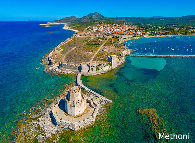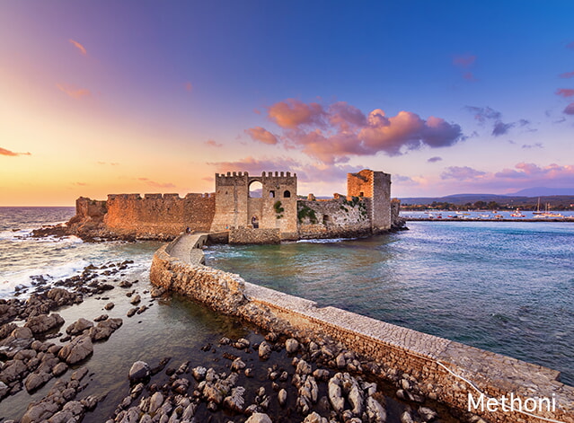 Visite du village côtier pittoresque de Methoni avec son château majestueux qui fait revivre l‘histoire. Votre voyage se poursuit dans la petite ville côtière idyllique de Pylos et son charmant port qui invite à la flânerie. Continuation vers l‘intérieur des terres, dans la région historique d‘Olympie.