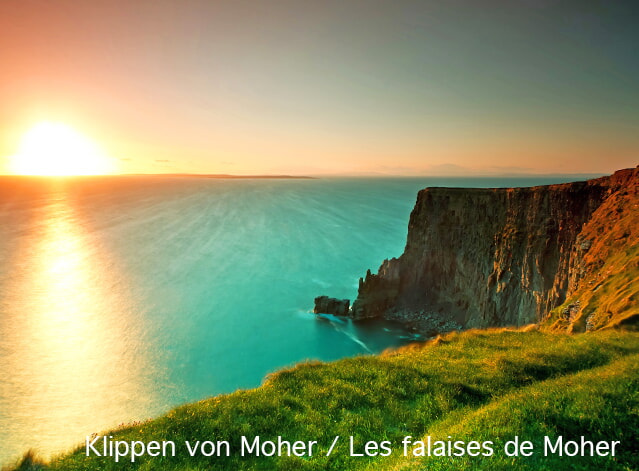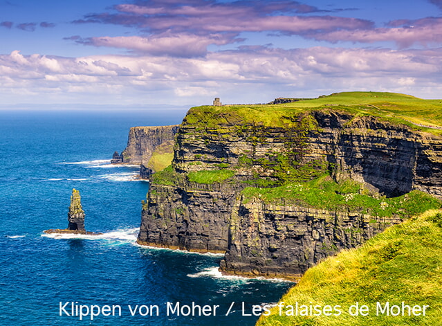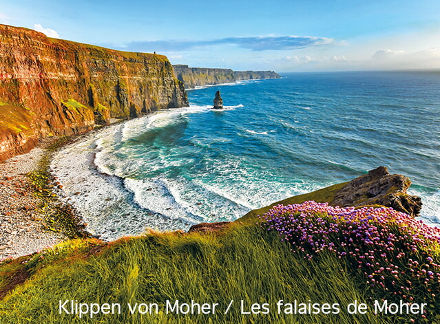 Sanfte Hügel, geheimnisvolle Moore, spektakuläre Küsten, historische Schlösser und eine Geschichte voller Mythen und Legenden – Irland verzaubert mit imposanten Zeitzeugen vergangener Epochen und grandiosen, ungezähmten Naturkulissen! Auf den Pfaden der Kelten erleben Sie die ursprüngliche Schönheit der sagenumwobenen « grünen Insel » !