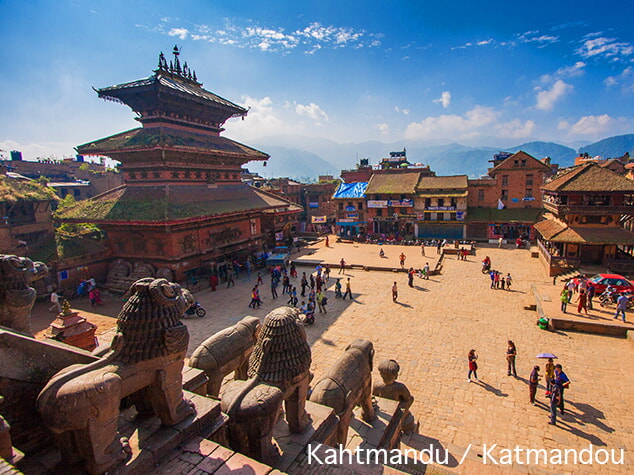 Das ehemalige Königreich fasziniert mit sagenhaften Berg-Panoramen, architektonischen Meisterleistungen und herausragenden Kulturperlen in den historischen Königsstädten. Am Nachmittag Spaziergang im historischen Zentrum Kathmandus inkl. dem Durbar Square – ein Juwel auf der Liste der UNESCO Weltkulturerben. Einst gab es im Kathmandu-Tal drei königliche Plätze und der Durbar Square in Kathmandu ist einer davon. Um den alten Königspalast liegen über 50 Tempel, Stupas und bildhübsche Pagoden mit phänomenaler Architektur aus dem 12. bis 17. Jahrhundert.