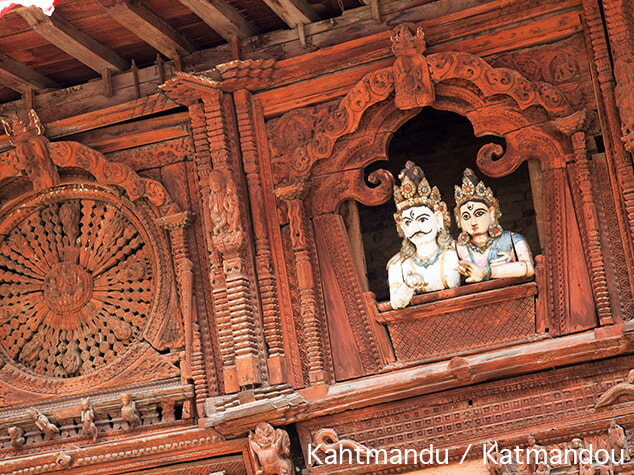 Viele Gläubige und Pilger ehren hier ihre Götter mit kleinen Opfergaben und Gebeten. Die meisten Bauten am Durbar Square sind aufwendig aus Holz gefertigt. Einer der prächtigsten Tempel ist ohne Zweifel der rosarot gestaltete Jagannath-Tempel mit seinen erotischen Schnitzereien, die auf die Tantra-Lehren zurückzuführen sind.