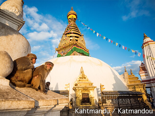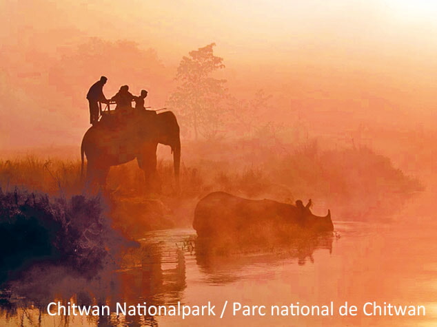 Der Mount Everest – der höchste Berg der Welt – hat Nepal berühmt gemacht. Majestätisch und schneebedeckt überragt er dieses Land, das so faszinierend wie vielfältig ist. Das Himalaya Gebirge im Norden, tropischer Dschungel im Süden – dazwischen das UNESCO geschützte Kathmandu-Tal. Gleich 8 von weltweit 14 Achttausender bilden die grandiosen Kulissen für die alten Königsstädte Bhaktapur, Patan und Kathmandu. Nebst atemberaubenden Bergkulissen und den UNESCO geschützten kulturellen Leckerbissen lockt der subtropische Süden mit einer exotischen Tierwelt im Chitwan-Nationalpark – Heimat von Nashorn, Leopard und dem Bengalischen Tiger. Aussergewöhnlich sind aber auch die Menschen. Mit der warmen Herzlichkeit der Nepali – ein Mosaik aus 70 Völkern mit über 50 Sprachen – erleben Sie Gastfreundschaft in reinster Form.