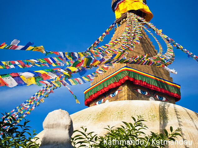 Ankunft in Kathmandu und Transfer in Ihr Hotel. Herzlich willkommen auf dem « Dach der Welt » ! Ein Meer aus Gebetsfahnen flattert unermüdlich im Wind und Manisteine und Thangkas zeugen von der tiefen Gläubigkeit der Menschen. Wenn das Morgenrot die schneebedeckten Giganten des Himalayas in leuchtende Farben tüncht – versteht man, warum Nepal als « Thron der Götter » bezeichnet wird.