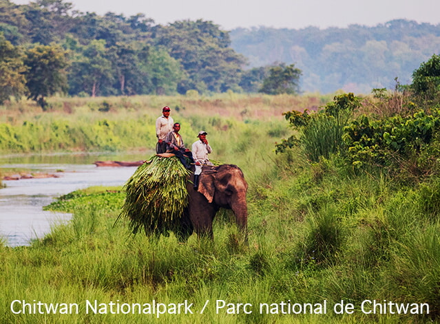 Eine Dschungel-Safari auf dem Rücken eines gutmütigen Dickhäuters und eine Bootsfahrt an den exotischen Ausläufern des Himalaya sorgt für wahrhaft unvergessliche Eindrücke. Geniessen Sie dabei auch die herrliche Geräuschkulisse des Dschungels.